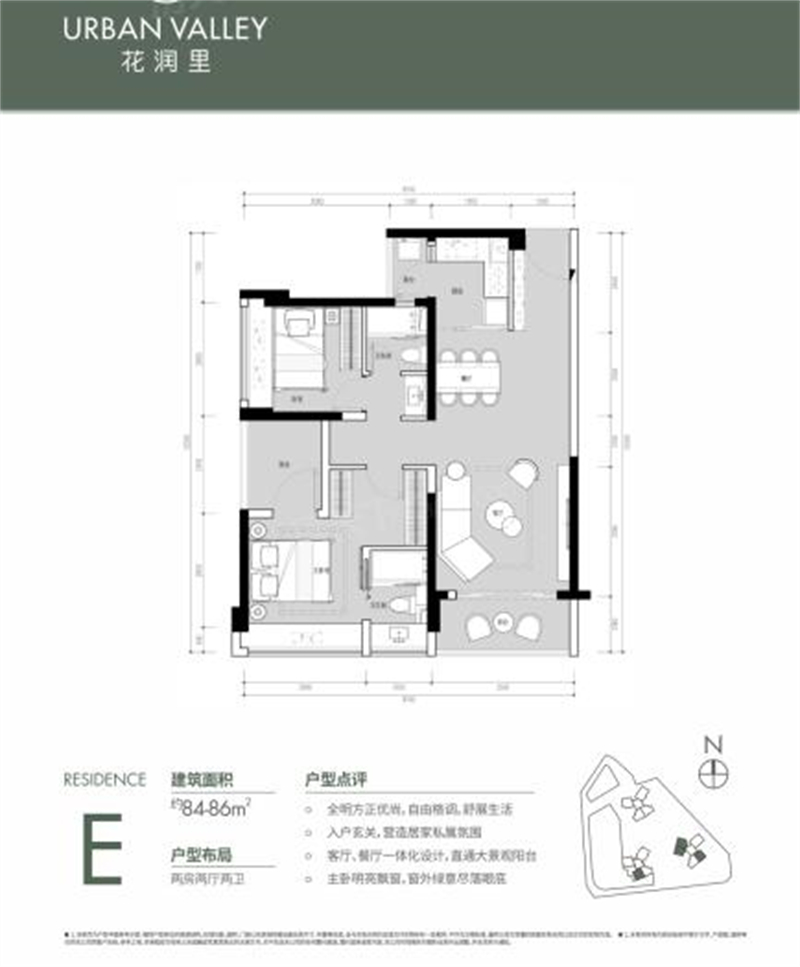 双阳台设计,南北通透,动静分区,约3.8m舒适客厅开间尺度