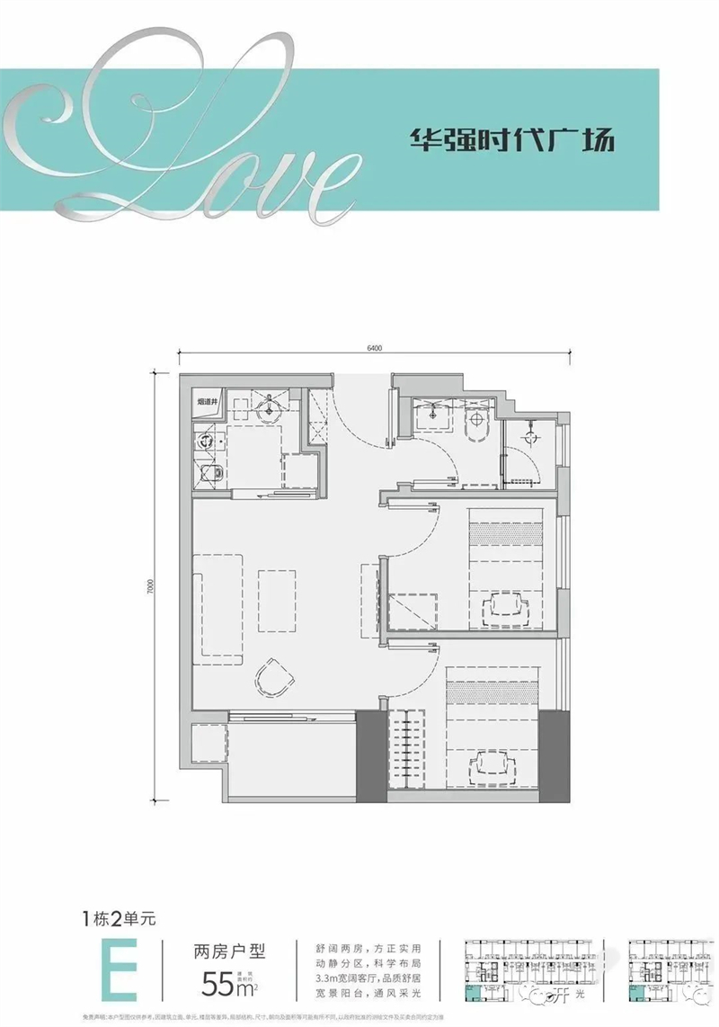 • 华强城乐芙公馆 5 5 平米-2房2厅1卫-55.00㎡