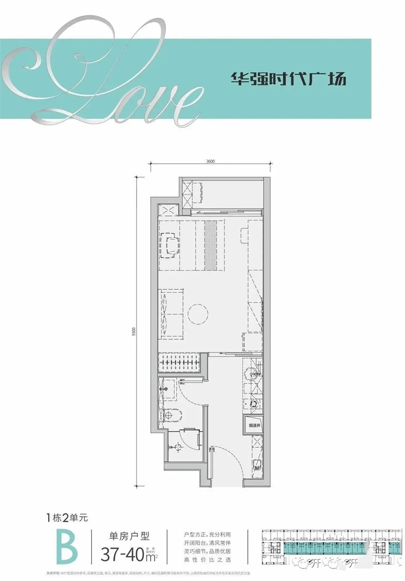 • 华强城乐芙公馆 4 0 平米-1房1厅1卫-40.00㎡