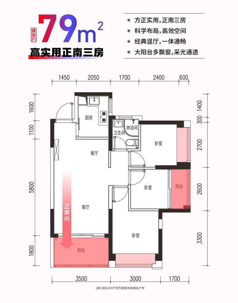 建面约7 9 - 1 3 0㎡三至四房精装住宅