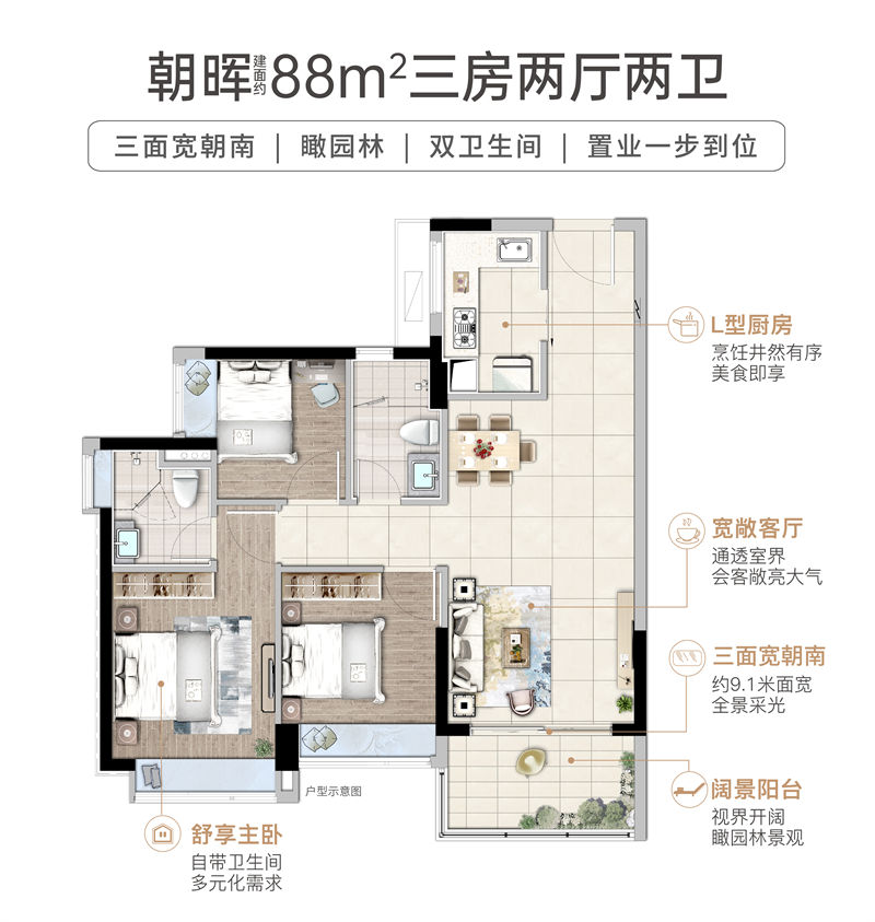 【朝晖·三房两卫】