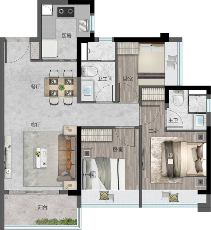 【约75㎡实用三房】