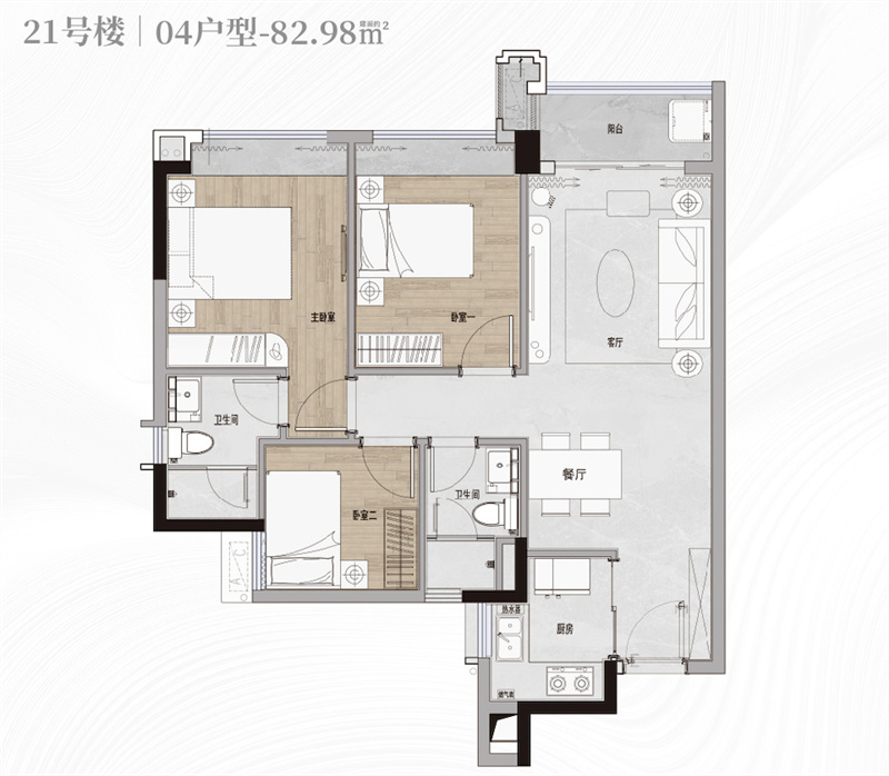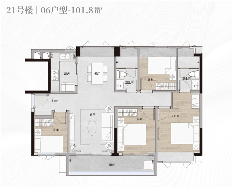 ● 101、105 m²大户型成熟代表,四开间朝南,内含畅阔阳台与双厅,多代家庭更舒适,渐入人生佳境。南向采光与山林景观视界的最大化,让日常享受更好的采光与视野角度。