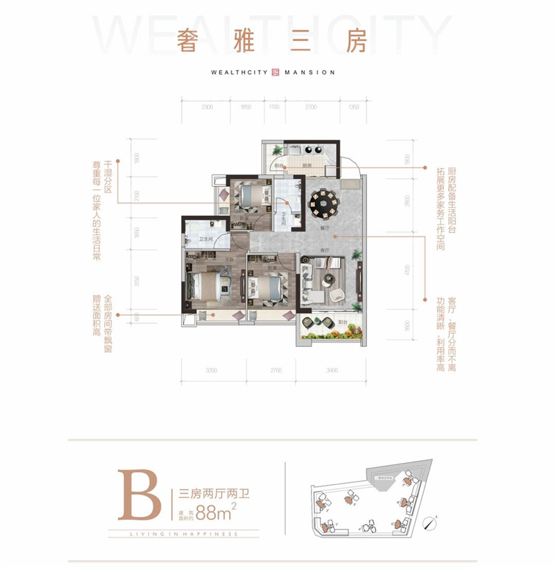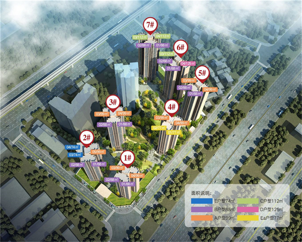 | 建筑类型: 高层 塔楼 | 计划户数: 884(一期)户 | 占地面积: 34.2万㎡ |