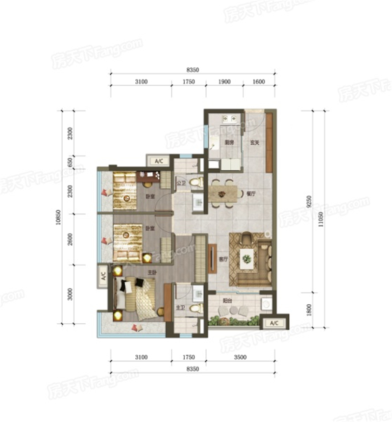 • 万科万荟花园 9 5 ㎡-3房2厅2卫-95.00㎡