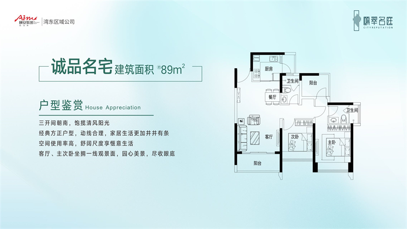 [精粹空间] 建面约89㎡经典人居产品,户型方正实用,户户朝南,超高使用率,超低梯户比,打造舒适居家尺度。