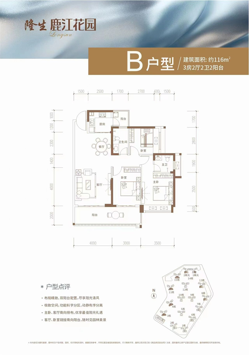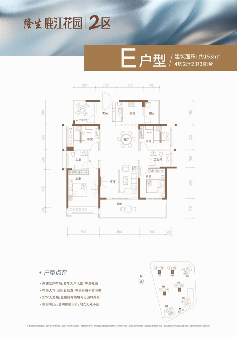 隆生鹿江花园主打改善型居住,户型规划106-150㎡三至五房,其中60%为127-150㎡大户型为主,区别金山新城其他纯刚需楼盘,确保高端居者更优质的居住环境。购买人群基本为周边事业单位、公务员、企事业主,其中60%均为隆生老业主重购及老带新认购,优质圈层可见一斑。