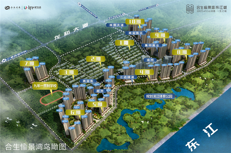 项目总占地面积约61万㎡,总建筑面积约225万㎡,总规划十期建设,是合生在惠州打造的一个环境清幽的集养生、休闲、宜居于一体的超200万㎡规模级江岸生态宜居大盘。